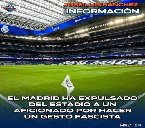 此外,一名皇馬球迷賽前在死忠看臺內(nèi)做出法西斯手勢被攝像頭拍到,隨后被驅(qū)逐出場。賽后,皇馬立刻官方宣布,對這名俱樂部會員啟動開除程序。