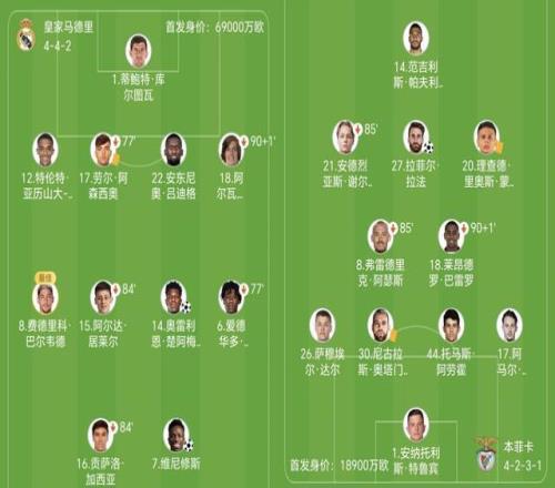 兩隊(duì)紙面陣容差距不小,皇馬光是首發(fā)球員身價(jià)就有6.9億歐元,本菲卡為1.89億歐元,帕夫利季斯單箭頭。穆里尼奧因紅牌無緣現(xiàn)場指揮,在伯納烏的包廂看比賽。