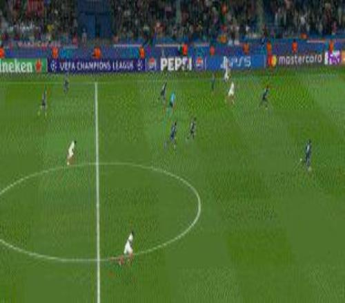 60’1比1 巴黎獲得前場(chǎng)右路定位球,維蒂尼亞短傳,杜埃持球突破,禁區(qū)右路下底傳中,門(mén)前馬爾基尼奧斯包抄扳平。