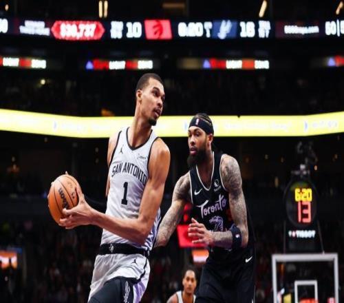 馬刺處在連續(xù)征戰(zhàn)5個(gè)客場(chǎng)的第二場(chǎng),上一戰(zhàn)客場(chǎng)擊敗東部第一的活塞。此戰(zhàn)面對(duì)東部第五的猛龍,球隊(duì)核心文班亞馬手感冰涼,上半場(chǎng)4投0中,靠罰球得到4分。下半場(chǎng)他的手感依然很糟糕,但是防守一直在線。其中在全場(chǎng)比賽還剩43.9秒,當(dāng)馬刺僅以108比104領(lǐng)先的時(shí)候。猛龍發(fā)動(dòng)快攻,珀?duì)柼貭柹匣@,被文班亞馬封蓋并且直接將球拿在手里。
