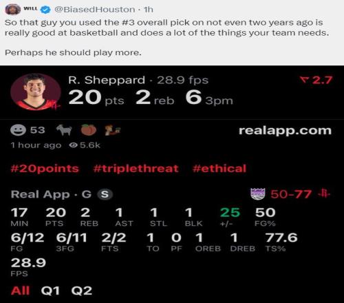 這場比賽里德-謝潑德的發(fā)揮很好尤其是上半場,他首節(jié)三分4中2拿到8分1籃板1助攻1蓋帽,次節(jié)三分7中4拿到12分1籃板1搶斷,整個上半場他就已經(jīng)命中6個三分球拿到20分。