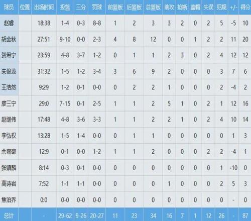 全場(chǎng)比賽,胡金秋首發(fā)出戰(zhàn)約28分鐘,投籃10中9,以幾乎100%命中率砍下20分12板(4前場(chǎng)板),完爆日本男籃的歸化內(nèi)線科克,帶領(lǐng)中國(guó)男籃87-80贏下了至關(guān)重要的比賽。