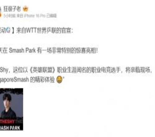 電競(jìng)體育2月27報(bào)道 今日,?WTT世界乒聯(lián)更新社媒,宣布《英雄聯(lián)盟》S8冠軍上單選手Theshy將在現(xiàn)場(chǎng)亮相。