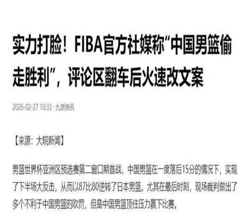 2月26日,中國男籃在世界杯預(yù)選賽上以87:80擊敗了日本隊(duì)。