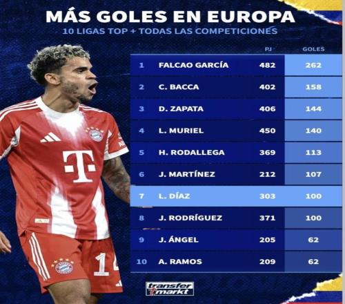 最近轉(zhuǎn)會(huì)市場(chǎng)網(wǎng)整理了“哥倫比亞球員在歐洲進(jìn)球最多”榜單,統(tǒng)計(jì)口徑是10大頂級(jí)聯(lián)賽+各項(xiàng)賽事。榜單里法爾考、巴卡、薩帕塔這些老牌射手把累計(jì)進(jìn)球堆到很高,前幾名的差距一眼能看出來。另一邊,迪亞斯和羅德里格斯都到了100球,但位置卻卡在中段,和頭部的262球形成強(qiáng)烈反差?,F(xiàn)役的迪亞斯還能把自己的排名往上擠到什么位置?(數(shù)據(jù)截至北京時(shí)間2026年2月14日)