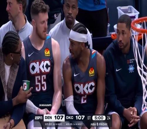 加時(shí)賽開打,亞歷山大、哈爾滕施泰因兩人都在場(chǎng)下休息,整個(gè)加時(shí)賽SGA一分鐘沒打,最關(guān)鍵的一波攻防是終場(chǎng)前1分22秒,又是卡魯索他搶斷了小哈的傳球后上籃命中,這一球后雷霆領(lǐng)先到5分。