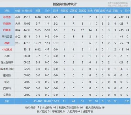 亞歷山大加時賽沒打,雷霆防守反擊連連得手。最后半分鐘,雷霆121-112領先到9分,穆雷連中3記三分。雷霆沒有犯錯,掘金無力回天。全場結束,雷霆127-121擊敗掘金。亞歷山大36分3板9助2斷2帽、霍姆格倫15分21板3帽。