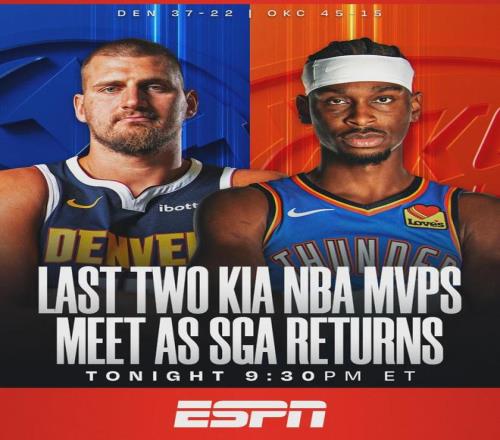 過去10場比賽,雷霆只有6勝4負,掘金更慘:4勝6負。截至今天賽前,掘金37勝22負跌至西部第四,僅領先第五的森林狼0.5個勝場。兩隊都有主力缺陣:雷霆的杰倫-威廉姆斯、掘金的隆-戈登和沃特森,這三個人都遭遇了腿筋拉傷。