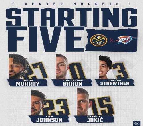 雷霆本場首發(fā):亞歷山大、卡森-華萊士、多爾特、霍姆格倫、哈爾滕斯泰因。掘金首發(fā):穆雷、布勞恩、斯特勞瑟、卡梅倫-約翰遜、約基奇。說回比賽,約老師開局手感不佳,首節(jié)投籃8中2。但其他隊友夠準,掘金單節(jié)三分11中7!