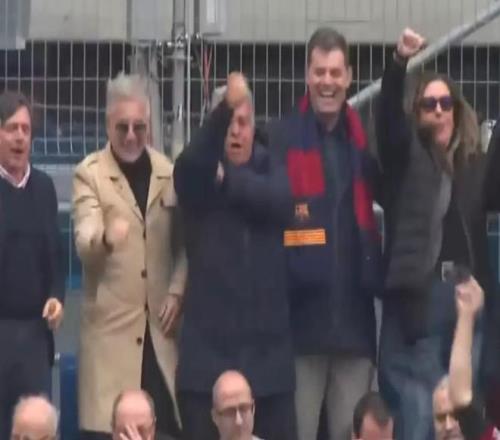報道稱,拉波爾塔又一次在看臺上成為焦點。在巴塞羅那對陣比利亞雷亞爾的比賽中,這位巴薩前主席被Esport3的攝像機鏡頭捕捉到不尋常的一幕:當看臺上部分球迷高唱“跳起來,跳起來,是皇馬球迷就別跳”時,拉波爾塔不僅加入合唱,還在座位上隨著節(jié)奏跳動,同時做出了一個打傘的不雅手勢。