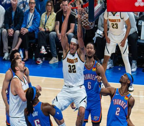 開場約基奇就連續(xù)拋投,杰林從對抗到身高,確實防不了。亞歷山大和杰林內(nèi)外開花,戈登內(nèi)突外投,雷霆完全攔不住,打了4分鐘,戈登獨砍13分,打停雷霆!暫停回來穆雷跳投續(xù)上火力,戈登連續(xù)造殺傷,雷霆陣地戰(zhàn)防守太吃力了。掘金最多拉開13分分差,多特三分止血后,后半段亞歷山大帶著替補席的米切爾和肯威開始反撲。節(jié)末杰林和小哈達威對轟三分球,米切爾連續(xù)單打,第一節(jié)打完,掘金40-37雷霆。進入第二節(jié),多特三分追平后,瓦蘭勾手打進,此后伊塞亞喬和米切爾下三分雨,掘金替補一直輸分。