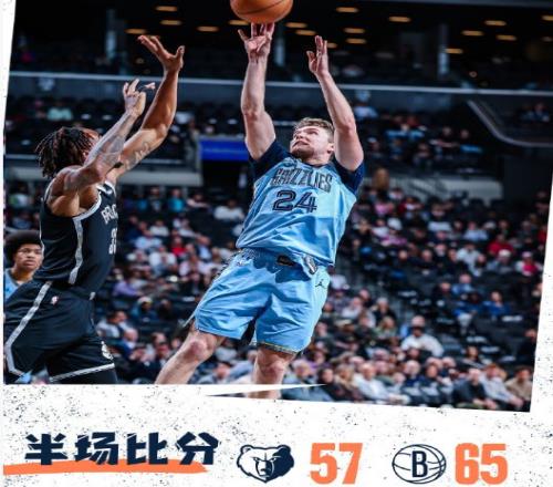 次節(jié)比賽,籃網(wǎng)連續(xù)兩節(jié)單節(jié)得分30+,且限制灰熊第二節(jié)本場(chǎng)首次單節(jié)不足30分。籃網(wǎng)多點(diǎn)開花逐步取得43-35領(lǐng)先優(yōu)勢(shì),灰熊連追4分,籃網(wǎng)用團(tuán)隊(duì)攻勢(shì)逐步擴(kuò)大53-41領(lǐng)先優(yōu)勢(shì)?;@網(wǎng)繼續(xù)擴(kuò)大60-47領(lǐng)先優(yōu)勢(shì),灰熊一波10-5攻勢(shì)追分,籃網(wǎng)單節(jié)32-26凈勝6分,上半場(chǎng)結(jié)束籃網(wǎng)65-57領(lǐng)先灰熊。前兩節(jié)比賽,灰熊三分20中9,呂佩爾4記三分16分、韋爾斯12分與普洛斯珀11分;籃網(wǎng)三分13中7,特拉奧雷11分與夏普10分。