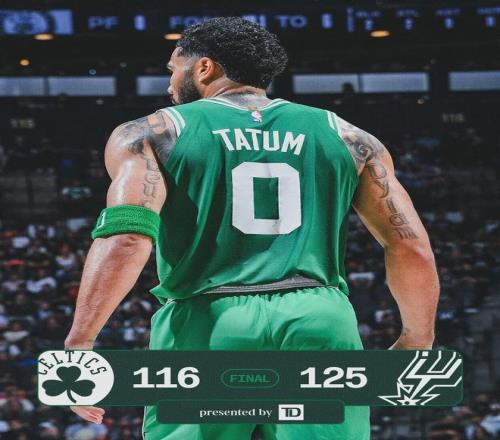 這是塔圖姆復(fù)出之后的第三場比賽,此役塔圖姆出戰(zhàn)27分鐘,投籃24中10,三分球14中4,得到24分5籃板2助攻2搶斷1失誤1犯規(guī),末節(jié)獨得10分依然無力回天。懷特22投11中,砍下賽季新高的34分,外加5籃板7助攻1蓋帽。